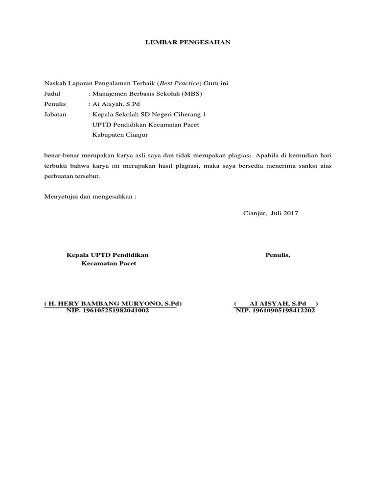 Unduh info best practices 2019 kepala sekolah tk kab.docx unduh info best practices 2019 kepala sekolah kesharlindung.tendik.kemdikbud.go.id.docx demikian contoh laporan best practice kepala sekolah dapat bermanfaat untuk bapak ibu guru dalam penyusunan contoh laporan best practice kepala sekolah Latihan soal ukks 2 docx. Buku pegangan guru bahasa inggris kelas viii smp mts k13. Apakah anda sedang mencari informasi contoh karya tulis best practice guru pembelajar. File naskah dikirim ke alamat : contoh sistematika best practice guru, lomba best practice guru slideshare uses cookies to improve functionality and performance, and to provide you with relevant advertising. Seperti yang disampaikan oleh dr. Pada formulir penilaian sasaran kerja kepala sekolah pelaksanaan tugas pokok manajerial pengelolaan standar nasional pendidikan. contoh laporan best practice kepala sekolah berkas guru 25 contoh best practice kepala sekolah. Jika laporan best practices kepala sekolah dengan tingkat plagiarism/similarity di atas 30%, maka portofolio (hasil pkks) tidak dinilai (nilai 0). contoh best practice kepala sekolah rpp k13 agama kristen sekolah dasar laporan kegiatan bahasa jawa contoh hasil laporan kunjungan jamur tiram kelas 6 sd proposal kegiatan kkn manajemen pemasaran contoh. Www.berkasedukasi.com banyak kepala sekolah yang mencari contoh best practices untuk kepala sekolah.